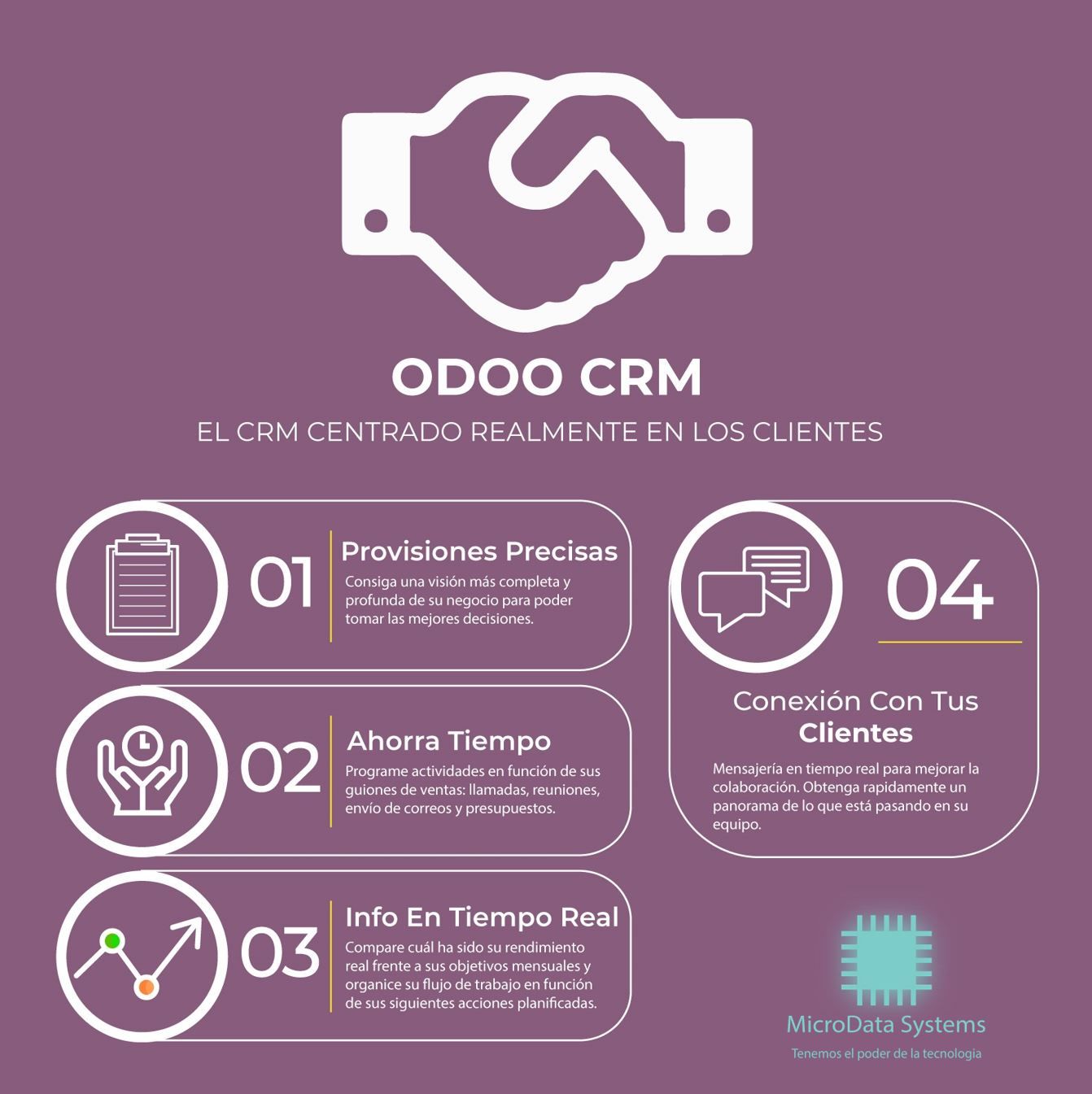 Lo más importante para ODOO es el cliente. Con el CRM conocer el estatus de mi oportunidad de venta ¡Nunca fue tan fácil!. Me brinda información de las necesidades de mi lead, verifica las actividades que se han planificado y que puedo mejorar para no perder la oportunidad. De esta manera puedo centrar toda la gestión que mi equipo de ventas y de marketing en aquellas oportunidades que se encuentran activas con provisiones precisas de cierre en tiempo real.